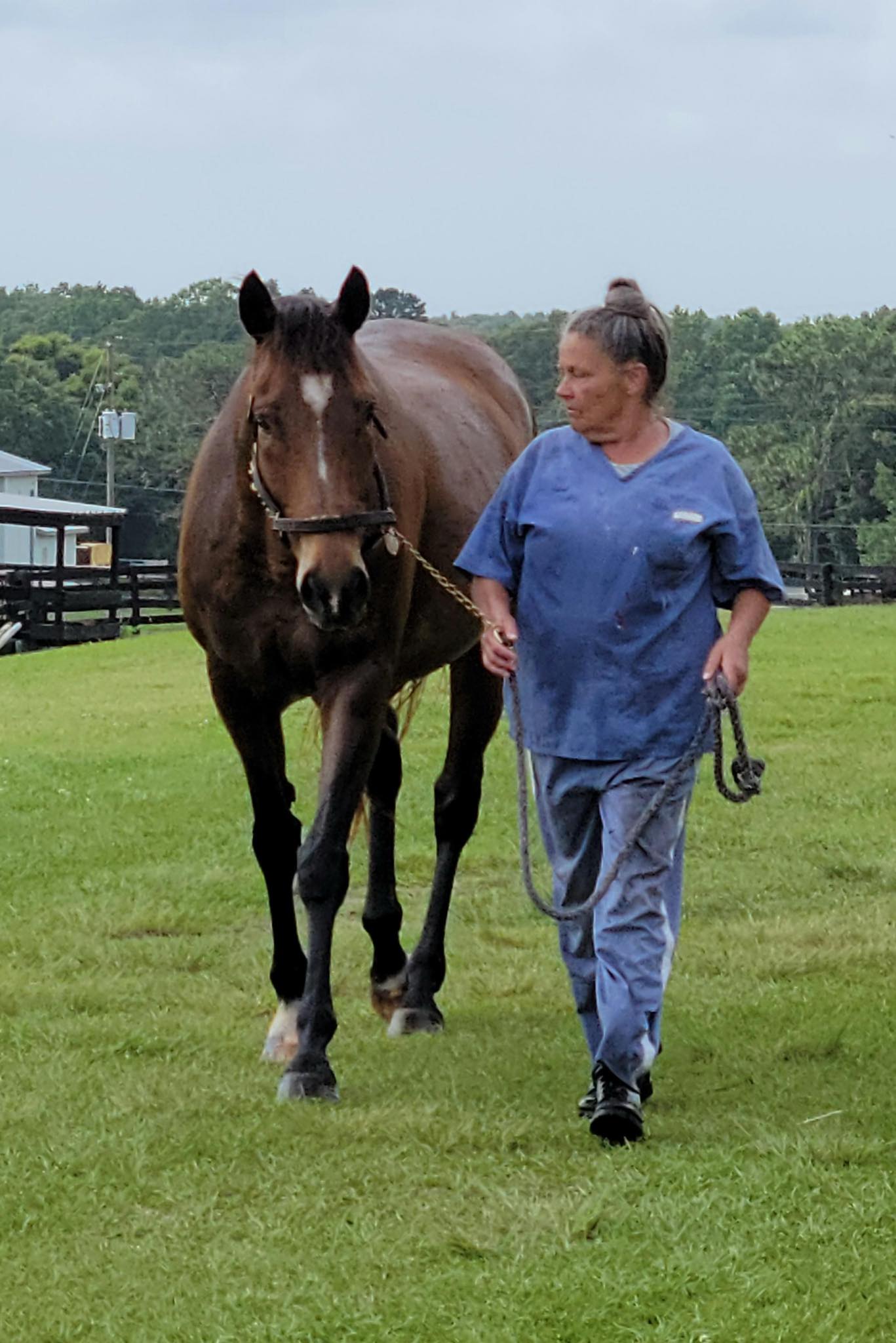 Nicole Purdom working with one of her client's horses post release.