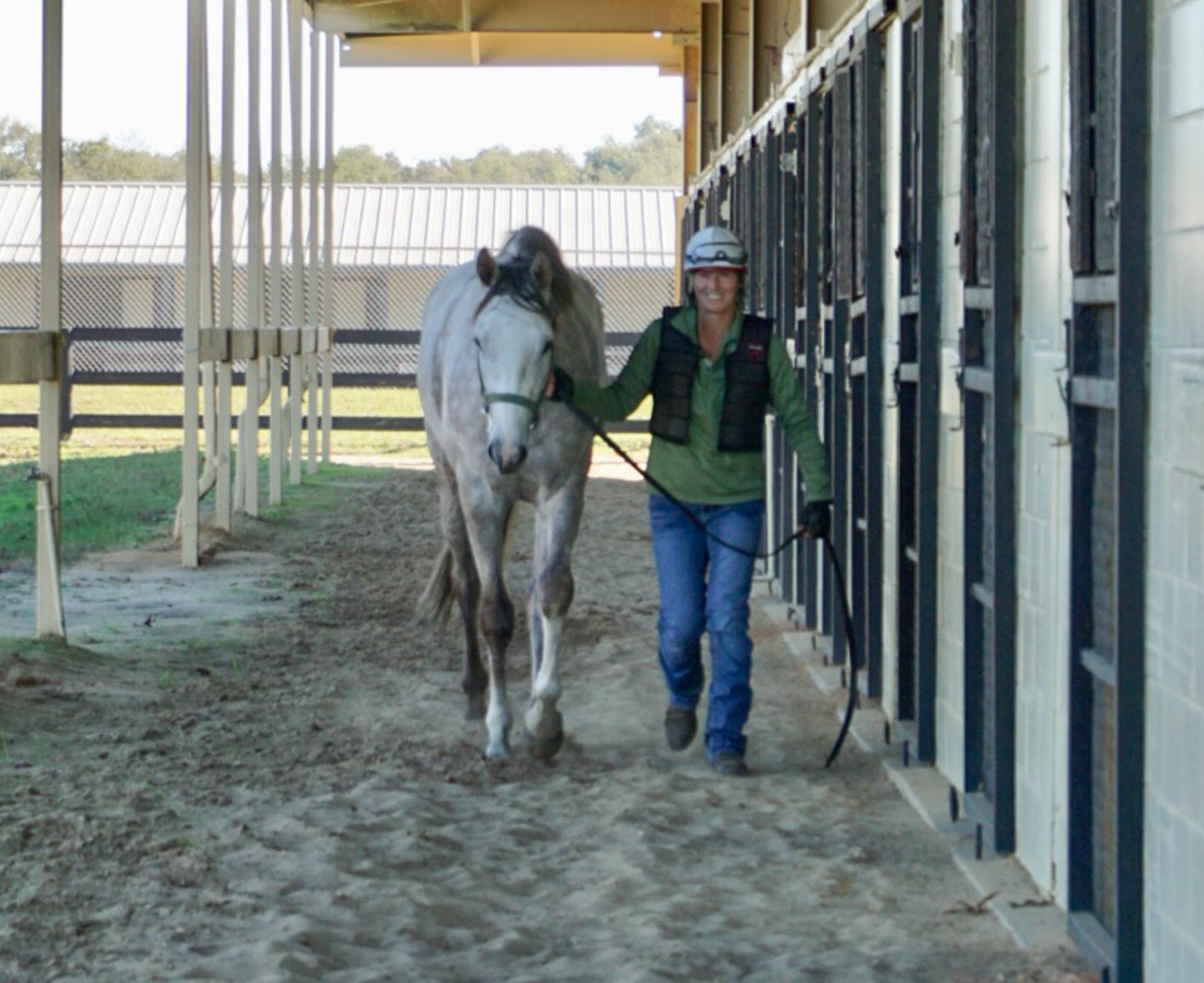 Lauren Vannucci after release working as a rider at Niall Brennan Stables.